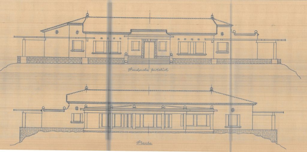 Plano alzado de las fachadas de la villa Casablanca por Joaquín Rieta. 1953.