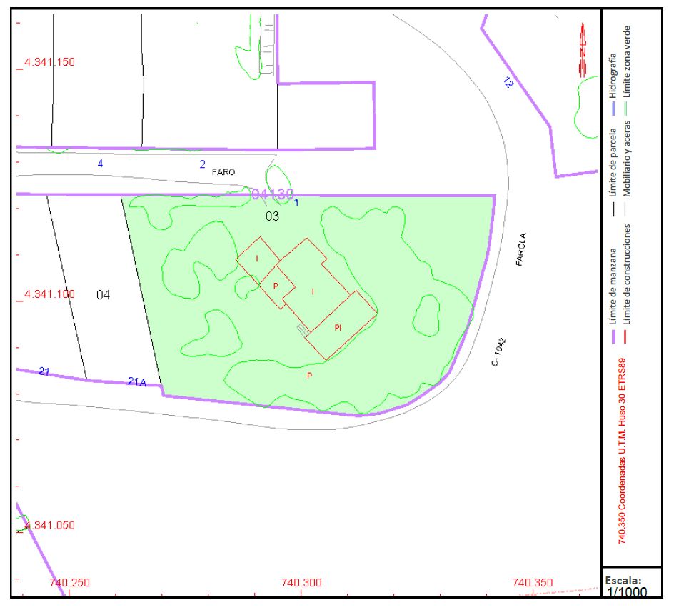 Plano del catastro con la parcela y edificación de la villa Casablanca en el faro de Cullera.