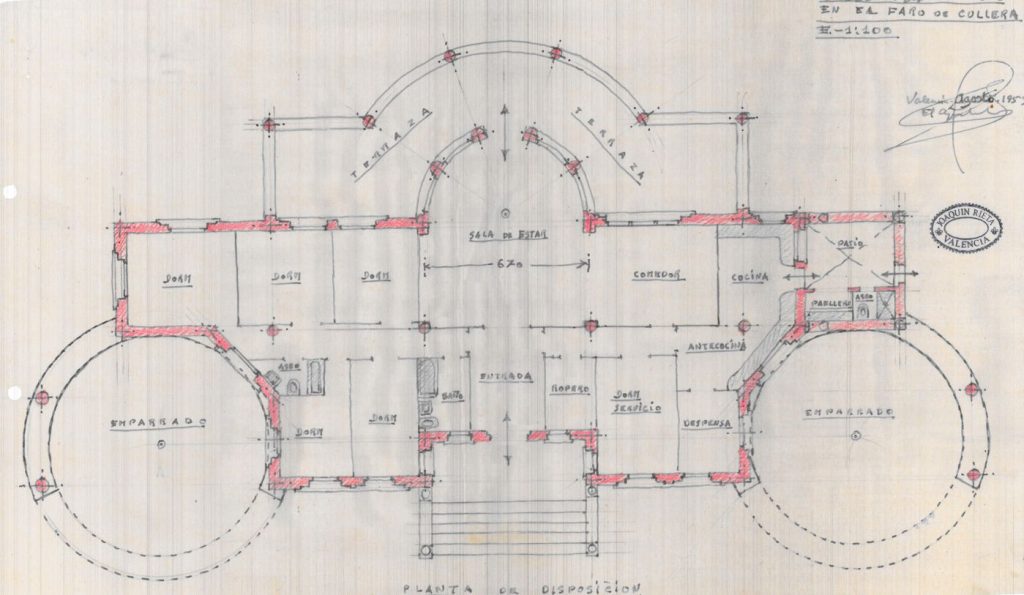 Plano de disposición de la villa Casablanca del proyecto del arquitecto Joaquín Rieta. 1953