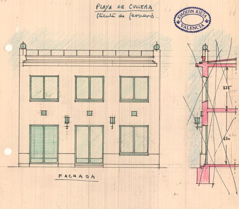 Proyecto de fachadas de la villa Casablanca por Joaquín Rieta. 1953