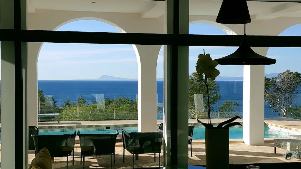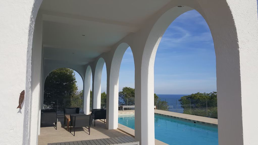 Durante un tiempo, la villa ha estado en proceso de venta y también en el mercado de alquiler vacacional. Gracias a dicha circunstancia, hay imágenes en la red que nos permiten contemplar su reforma y como la casa ofrece un estado impecable en simbiosis con la naturaleza y el mar.